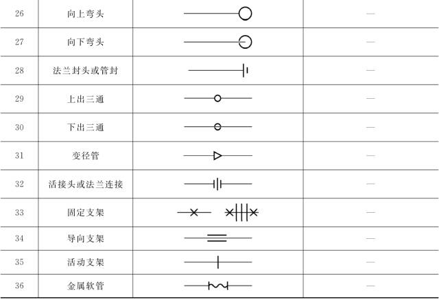 收藏┃暖通空调常用图例,史上最全总结 发布: 2024 年 11 月 11 日 665阅读 一、水、汽管道 (一)水、汽管道代号 水、汽管道可用线型区分,也可用代号区分。 水、汽管道代号 (二)水、汽管道阀门和附件图例 水、汽管道阀门和附件图例 二、风道 (一)风道代号 风道代号 (二)风道、阀门及附件图例 风道、阀门及附件图例 风口和附件代号 三、暖通空调设备 暖通空调设备图例 四、调控装置及仪表 调控装置及仪表图例 本文来自网络,不代表机电天下立场,转载请注明出处:https://mepbbs.com/archives/2937 标签:常用图例 暖通空调
