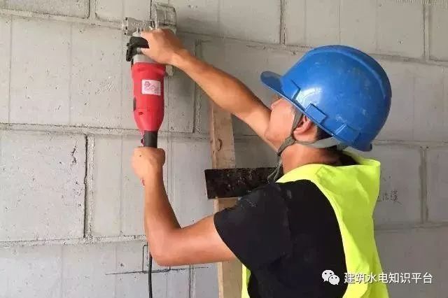 水电开槽必须采用专用开槽机开槽,严禁采用电锤或人工开槽,线槽开槽深度=线管外径+不小于15mm保护层。