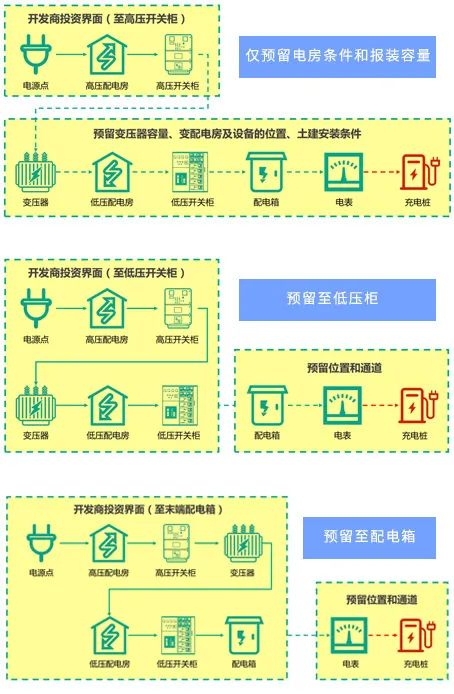 刚开始的预留规定是仅预留电房条件和报装容量,后逐步发展为预留至低压柜、预留到配电箱、预留至电表间、预留至线槽、预留至末端箱。