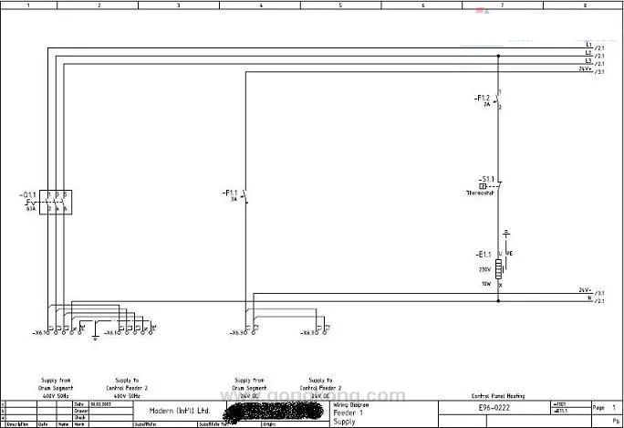 老外的图纸和接线是没有线号的,标的是元件,给元件编号,元件的几号触点接的是哪里,很清楚,不用再去满柜子找线号了。空气开关过载保护电流全部都标在图纸上,换新开关时方便调整,省去再去查和算的麻烦。