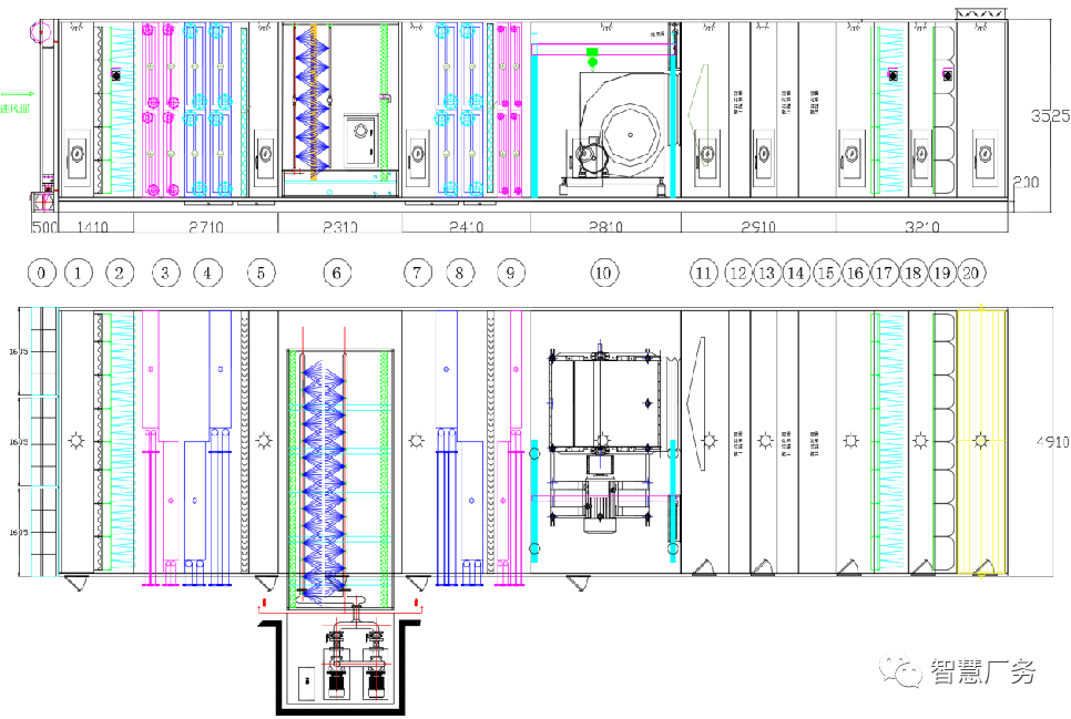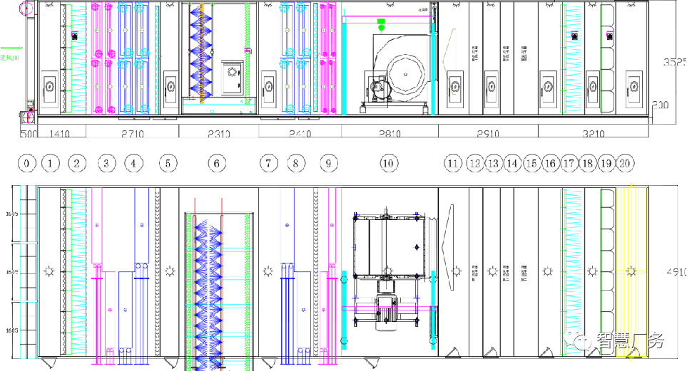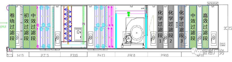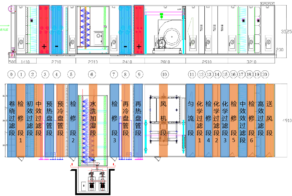 一般情况下,常规的净化空调箱MAU设备的功能段约有13~20个段,具体的配置根据工艺生产车间的环境需求具体情况而定。