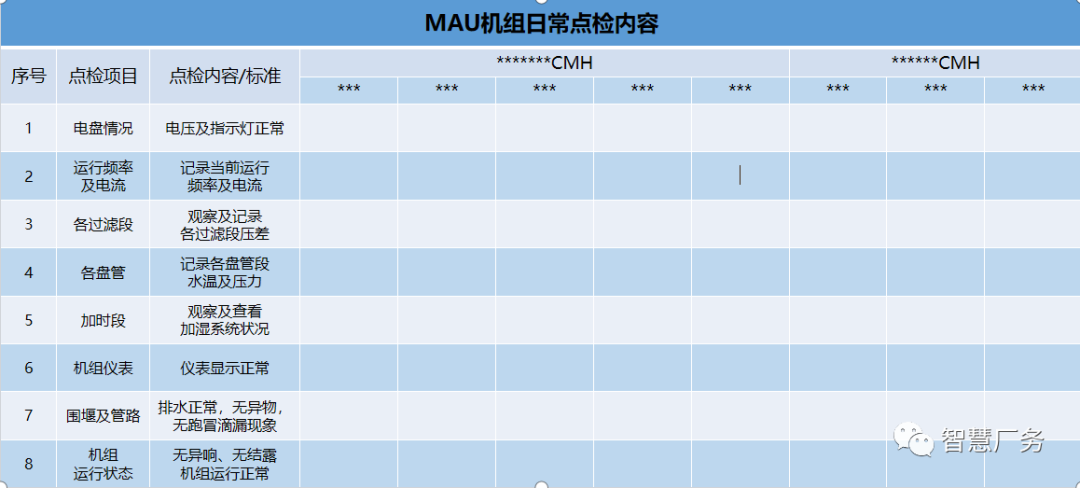 MAU日常点检常用模板如下: