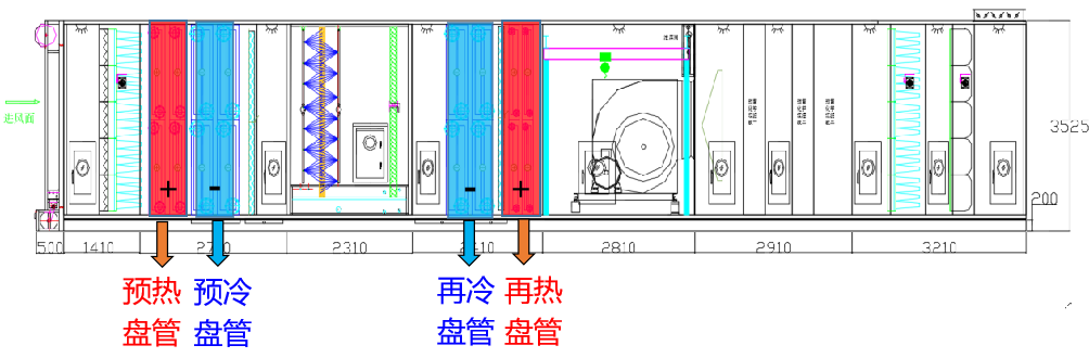 预热盘管:加热外气,提升外气温度;