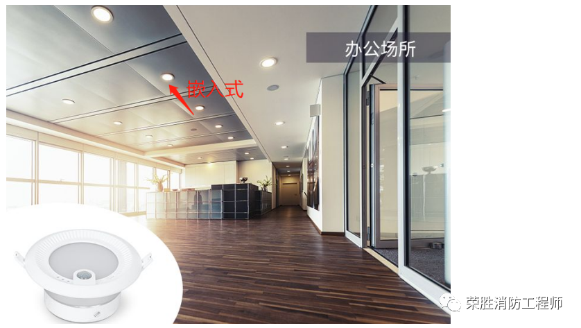 (1)顶棚:照明灯宜安装在顶棚上,可采用嵌顶、吸顶和吊装式安装。
