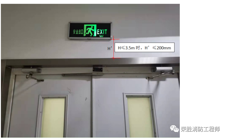 (2)室内高度不大于3.5m的场所,标志灯底边离门框距离不应大于200mm;
