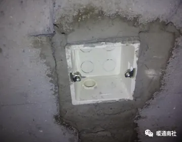 二次配盒阶段施工单位为简化施工工作,经常采用配管和配盒同时进行施工,线管敷设完成后由于线管的应力作用,线盒的混凝土未完全凝固状态下,经常会导致线盒敷设完成后造成偏移、歪斜。影响同房间线盒标高及观感度。在粉刷完成后还会出现线盒出墙面的现象。