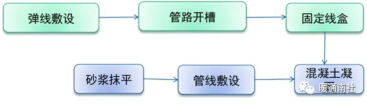 电气安装二次配管阶段采用先弹线+再稳盒+最后敷设管线的流程工作方法有以下几个优点: