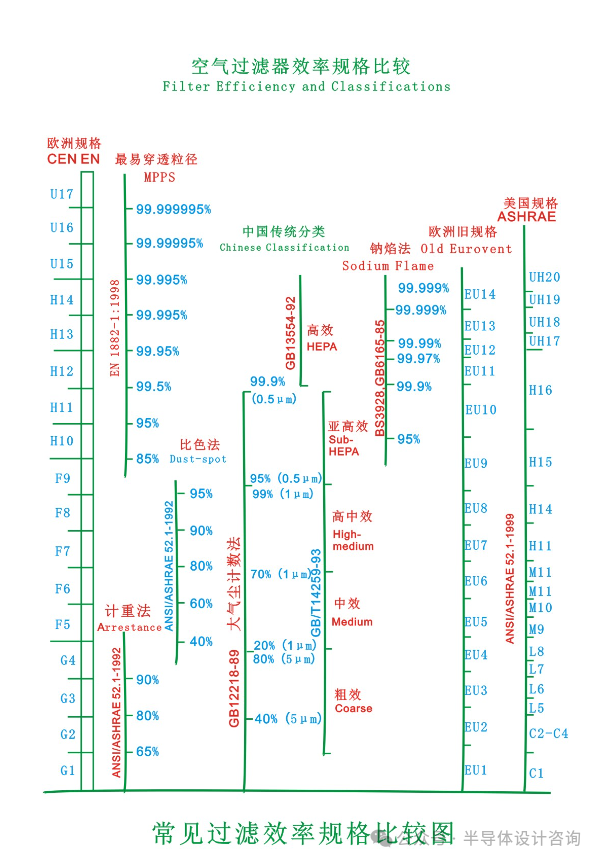 目前,在我国应用比较广的空气过滤器性能检测标准有:
