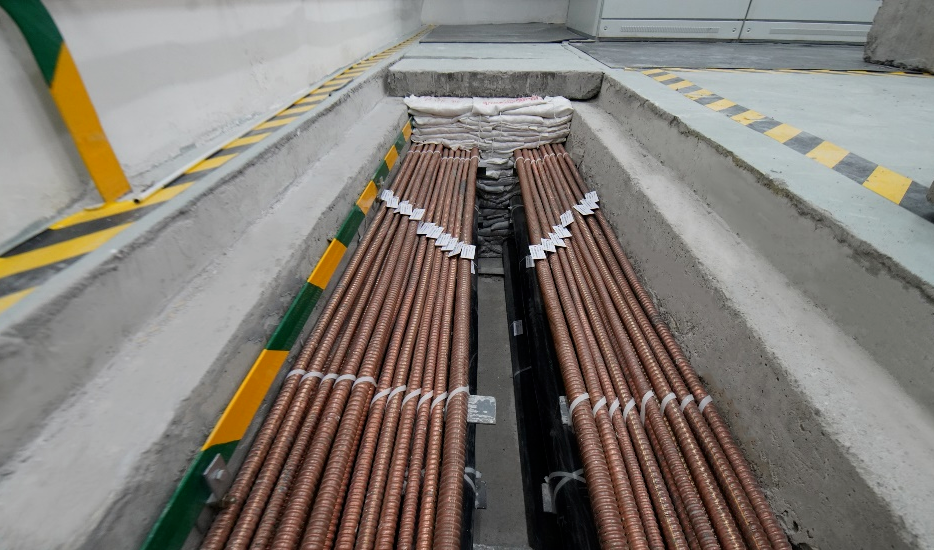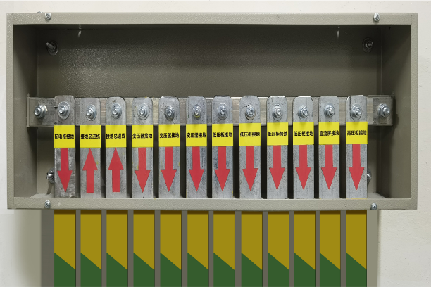 接地可靠,接地排同步于桥架柜,绝缘垫铺设规范,操作通道宽敞