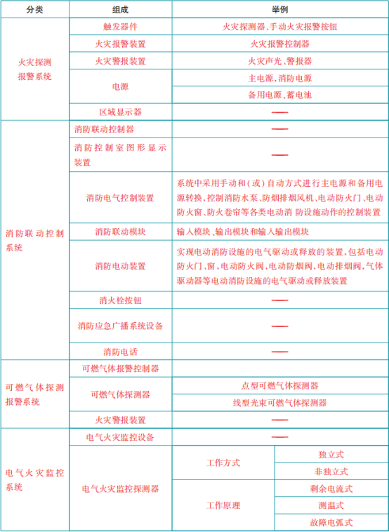 火灾自动报警系统按其组成部分消防功能的不同,细分为火灾探测报警系统、消防联动控制系统、可燃气体探测报警系统及电气火灾监控子系统。