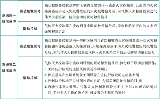 气体灭火装置启动及喷放各阶段的控制及系统的反馈信号应反馈至消防联动控制器。系统的联动反馈信号应包括下列内容: