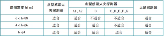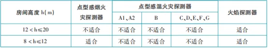 (1)对不同高度的房间,可按下表选择点型火灾探测器。