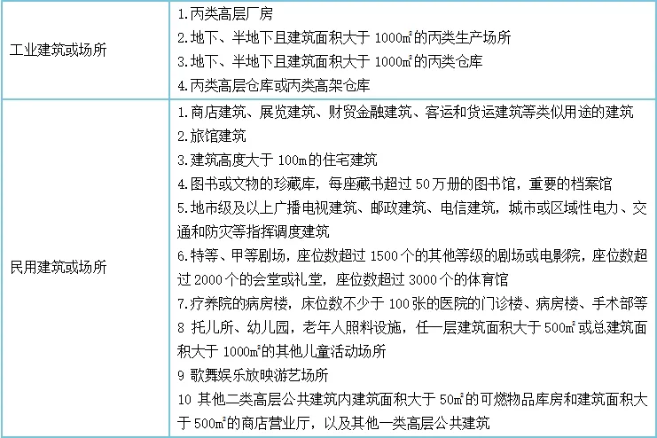 注:1.散装粮食仓库、原煤仓库可不设置火灾自动报警系统。