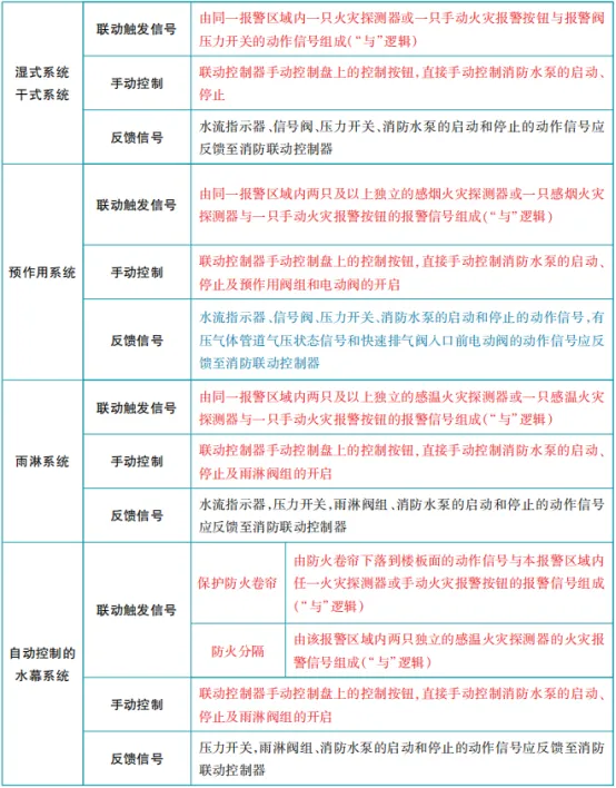 ①不同类别系统中,防火卷帘半降的联动触发信号组成要求如下: