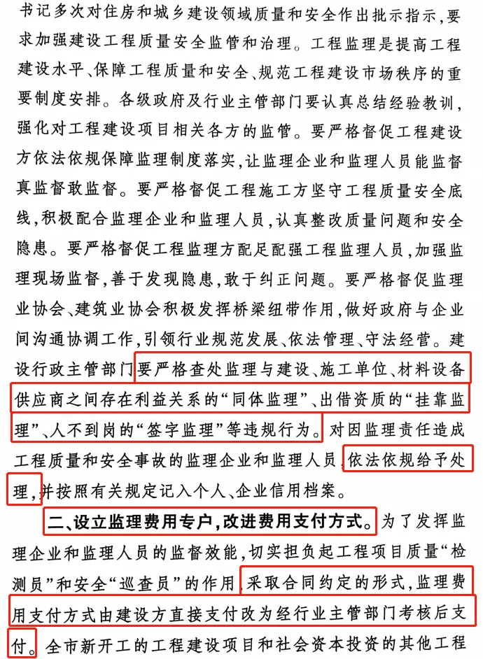 江苏省徐州市率先行动!徐州市住建局根据市人大常委会办公室关于印发《徐州市人民代表大会常务委员会关于改进监理费用支付方式保障工程项目质量和安全的决定》(徐人常办〔2023〕64号)文件精神,发布《关于加强全市建筑领域工程监理服务费专户管理的通知》。明确:监理费用支付方式由建设方直接支付改为经行业主管部门考核后支付。