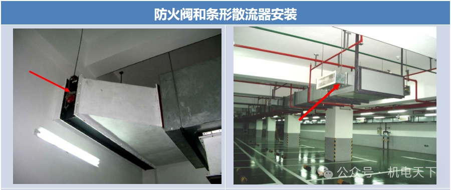 ②大于630mm 的防火阀需设独立吊架。吊架设置不能影响防火阀执行机构动作,应采用在防火阀顶部设置吊耳的方法。