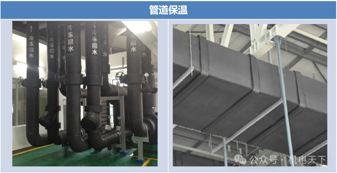 保温材料表面平整、清洁、密实、相贯线流畅美观。阀门及各类部件单独保温,便于拆卸维护,管道标识清晰。