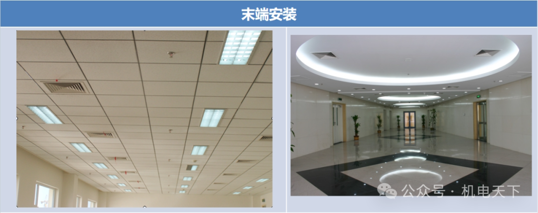 吊顶板上烟感、喷头、风口及灯具安装均匀合理的布局