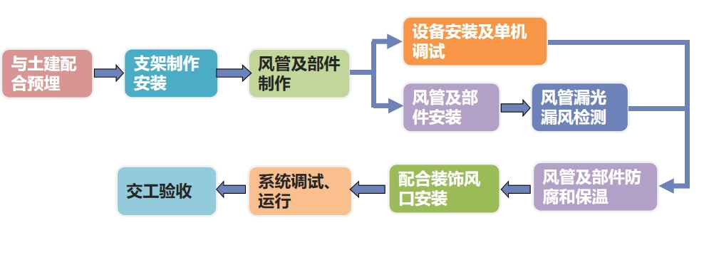 在风管加工前,应该预先对风管进行编号预排布,合理布置开风口、三通、支架等部位管段长度;风管各种标准件提前制作样品,大面积施工按样品标准制作。