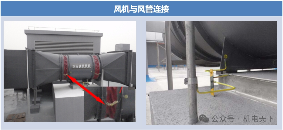室外风机软接与风管之间应做跨接处理,跨接线应该为卷圈软线。