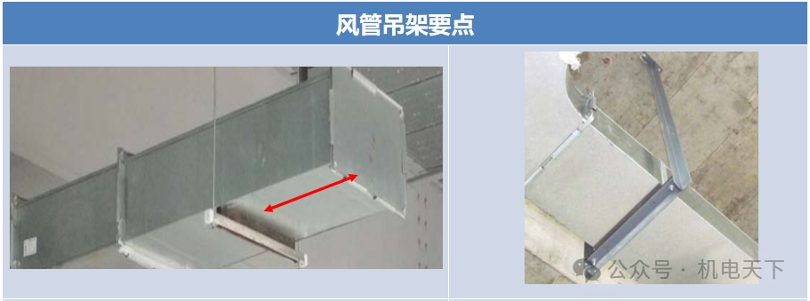 风管末端吊架离风管距离应不大于1000mm(一般控制在200mm)。