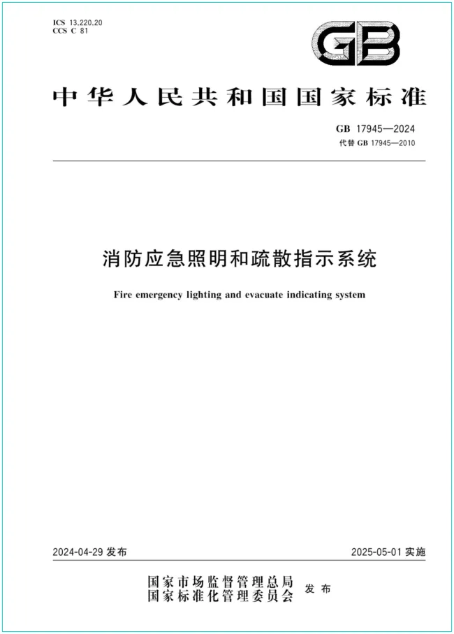 《消防应急照明和疏散指示系统》GB 17945-2024是由国家市场监督管理总局(国家标准化管理委员会)批准发布的强制性国家标准,该标准由应急管理部归口管理,并由TC113SC6(全国消防标准化技术委员会火灾探测与报警分会)执行。该标准于2024年4月29日正式发布,并将于2025年5月1日正式实施。
