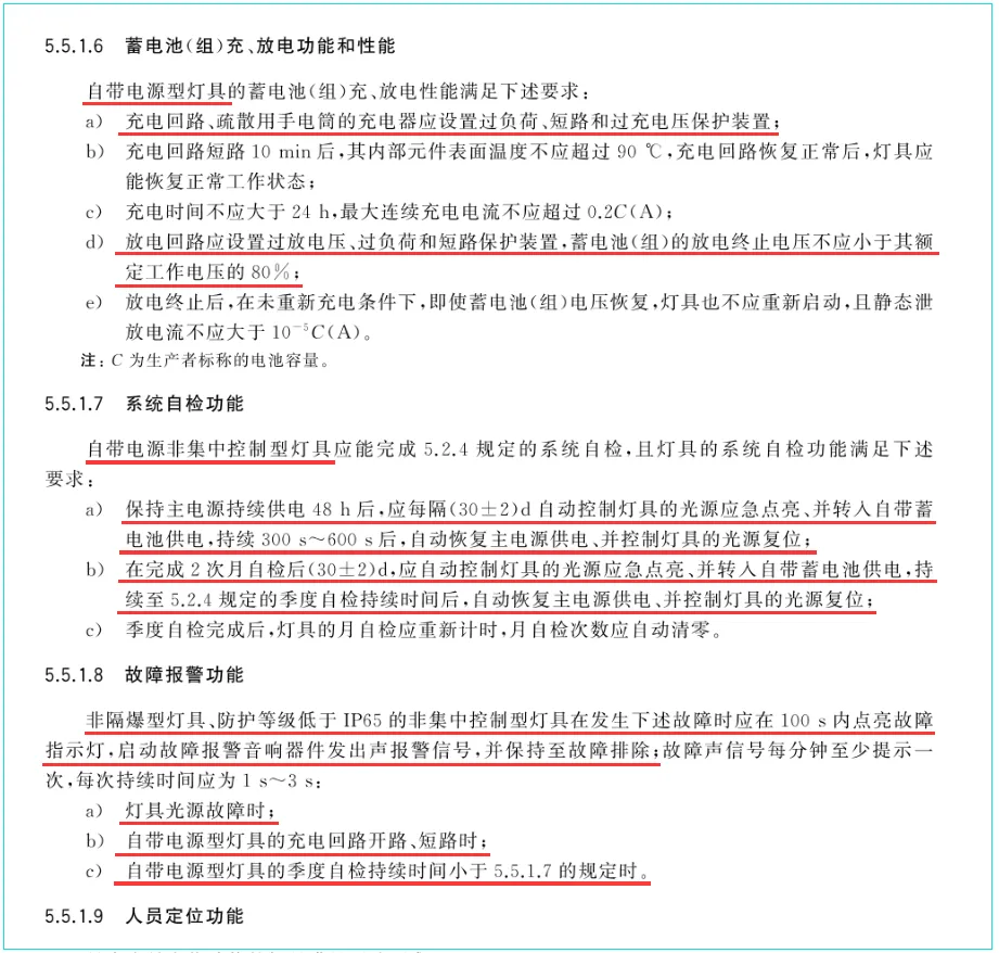 12.自带电源型灯具充电回路应设过负荷、短路和过充电压保护装置;放电回路应设过电压、过负荷和短路保护装置。