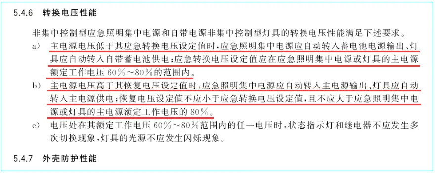 7.应急转换电压设定值:额定工作电压的60%~80%。恢复电压设定值:≥应急转换电压设定值,且≤额定工作电压的80%。