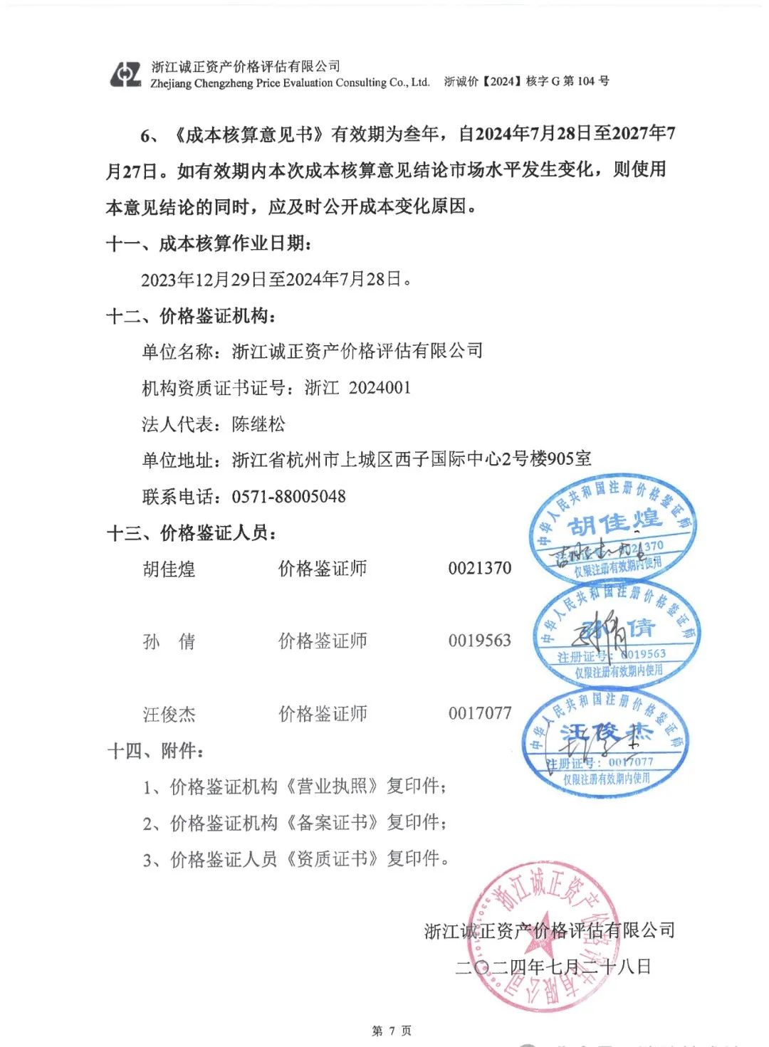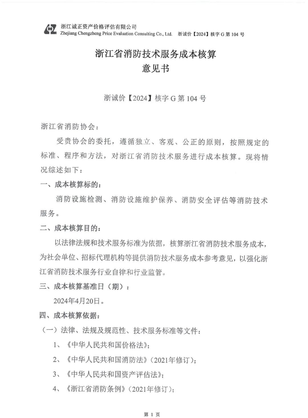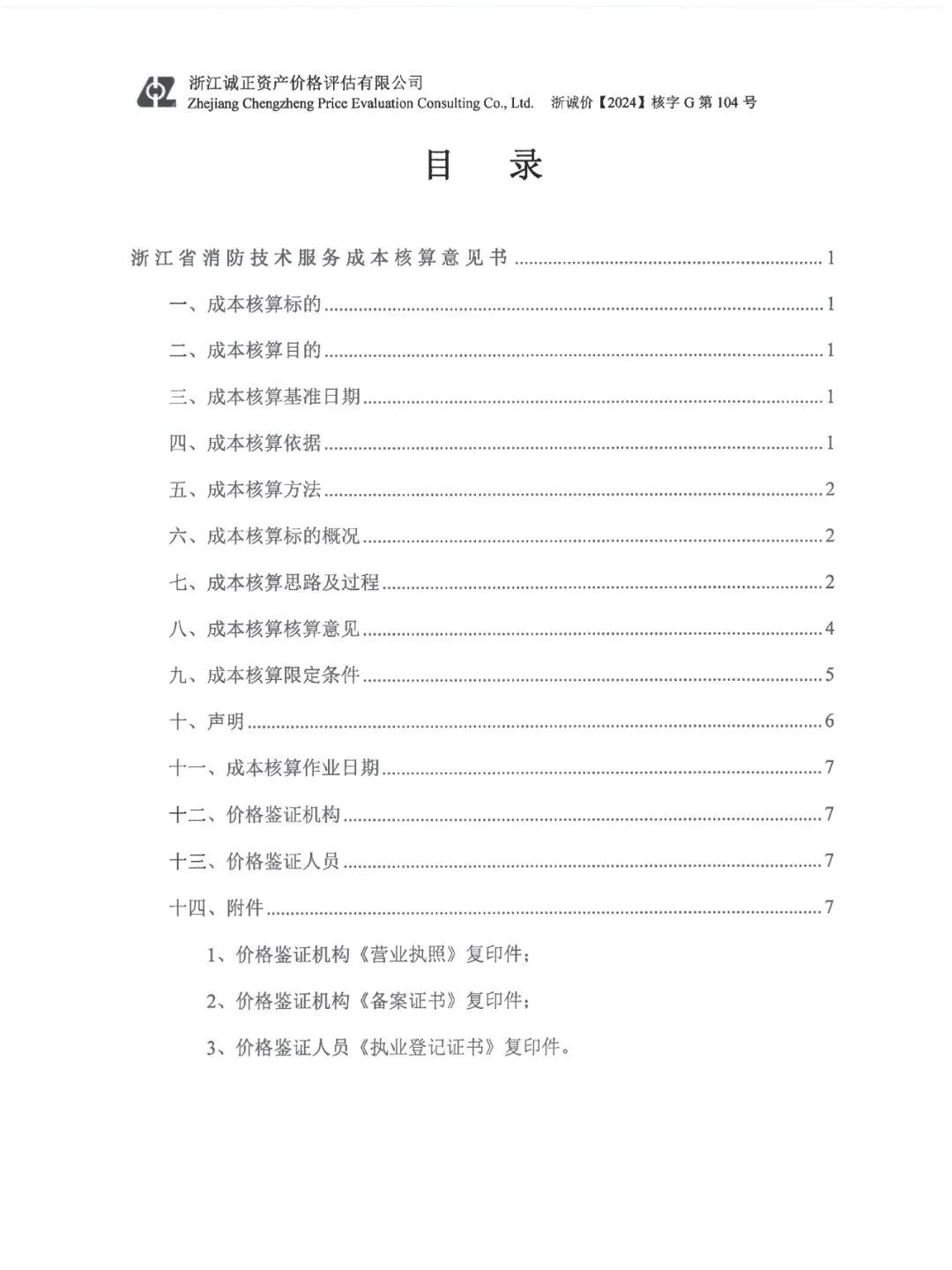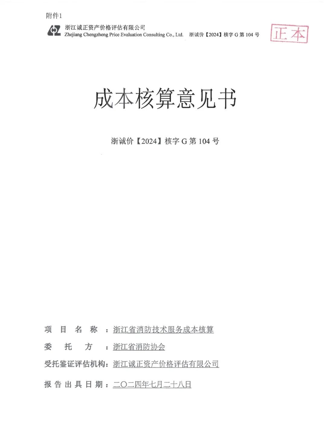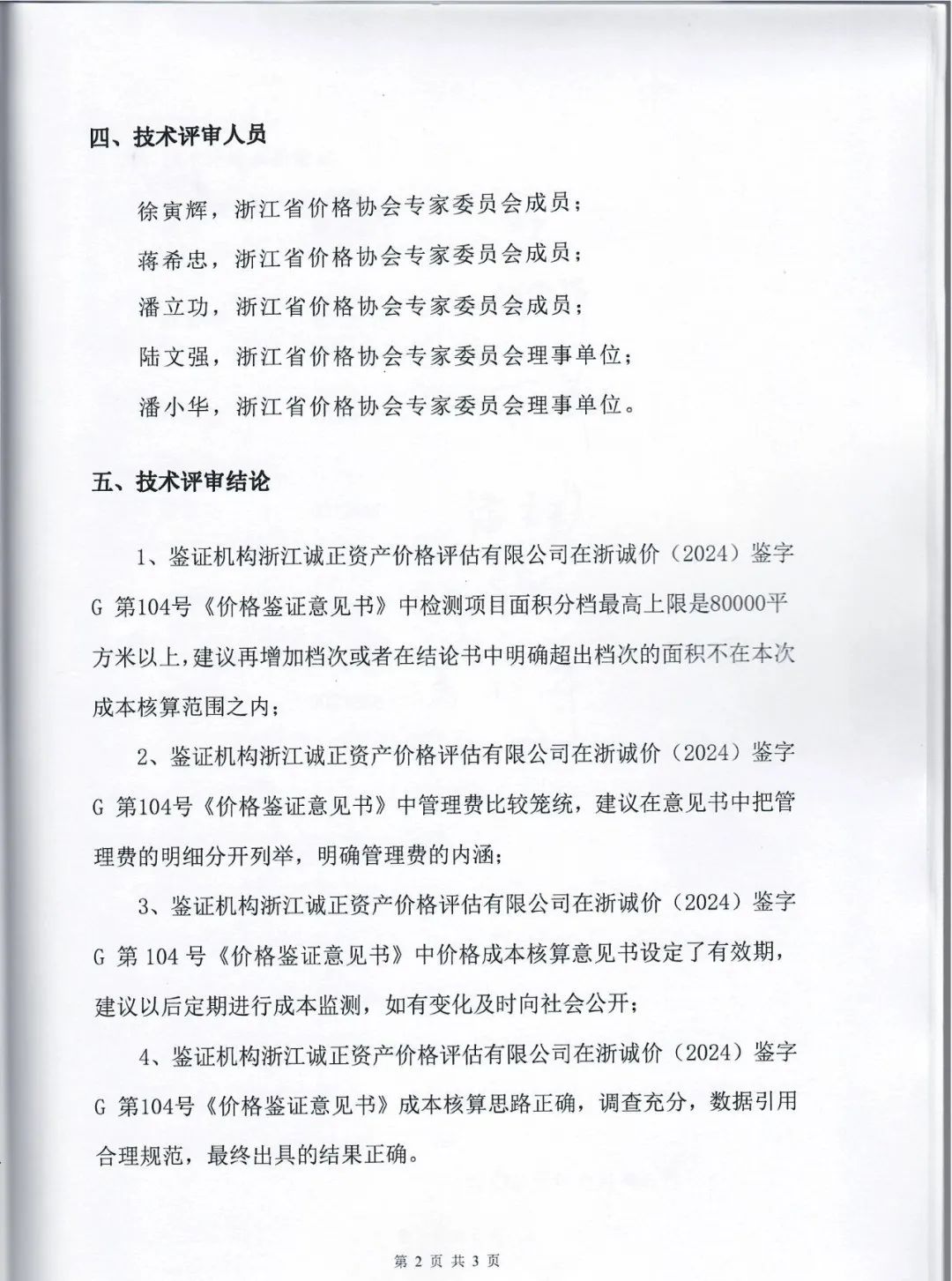 2.《关于浙诚价【2024】核字 G 第 104 号成本核算意见技术评审结论书》