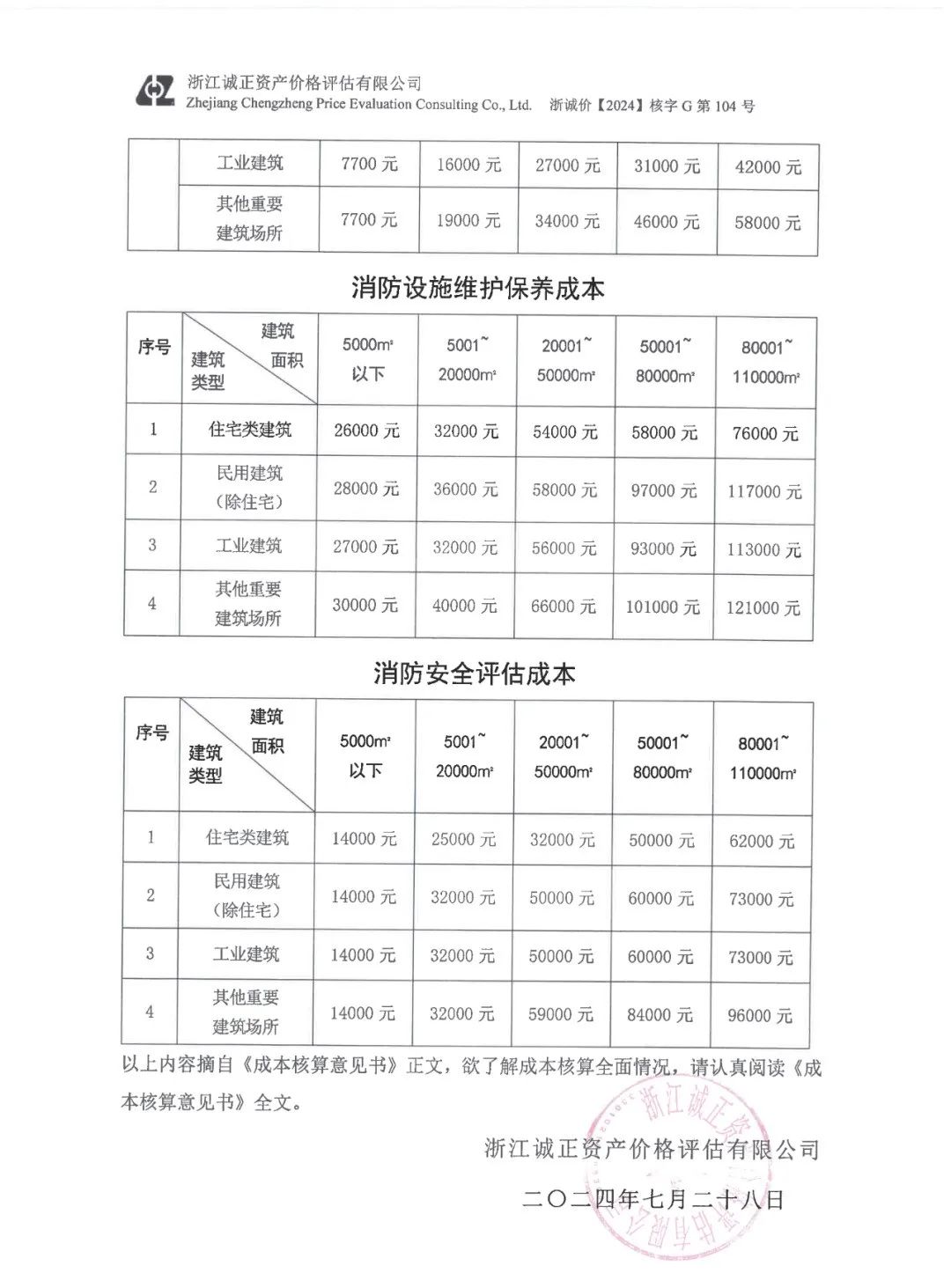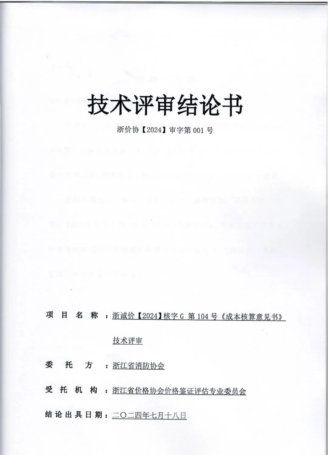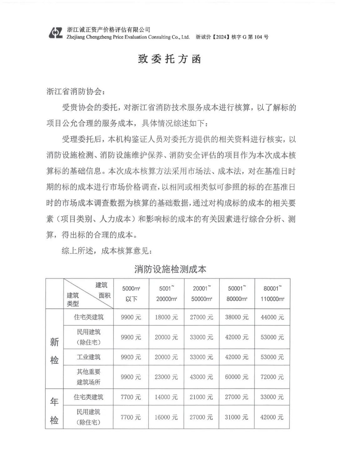 2024 年 7 月,浙江省价格协会组织行业专家召开浙江省消防技术服务成本核算项目技术评审会,对成本核算意见书的规范性、合理性、有效性进行了评审,认为成本核算思路正确,调查充分,数据引用合理规范,最终出具的结果正确。