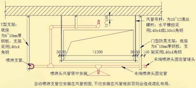 风管下喷淋管安装的细部欣赏: