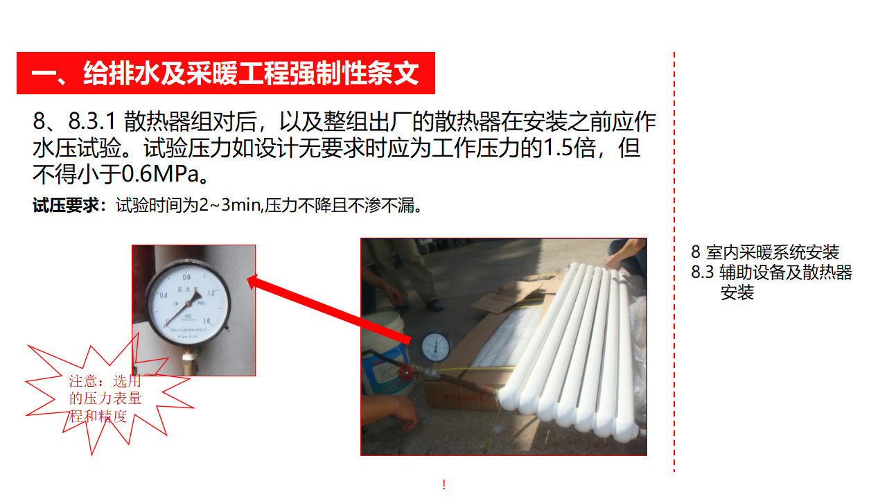施工强制性条文是强制执行的标准,是以保证工程安全、使用功能、人体健康、环境效益和公众利益为重点,也是施工质量的底线,所有的工程管理人员应当心中有数,不得随意违反。