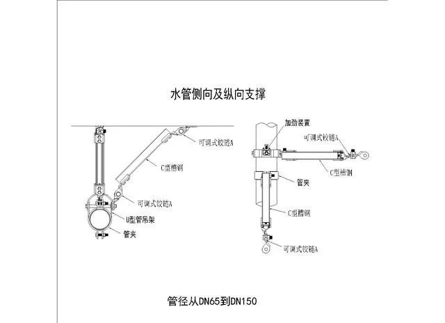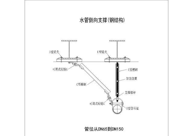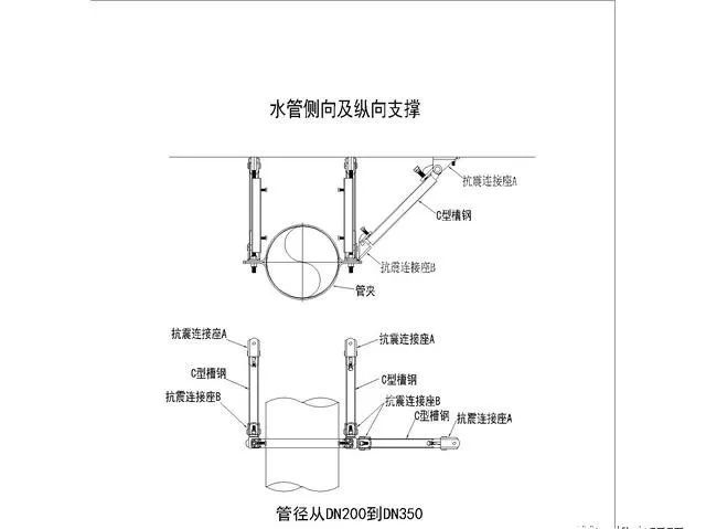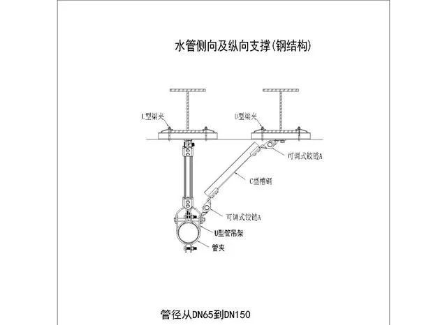 为防止地震时给排水管道系统及消防管道系统失效或跌落造成人员伤亡及财产损失,根据《建筑抗震设计规范》(GB50011-2010)第1.0.2条、第3.7.1条及《建筑机电工程抗震设计规范》(GB50981-2014)第1.0.4条等强制性条文,应对机电管线系统进行抗震加固。本项目对直径≥DN65的管道设置抗震支吊架,且此项目抗震支吊架产品需通过FM认证,与混凝土、钢结构、木结构等须采取可靠的锚固形式,具体深化设计由专业公司完成。抗震支吊架的设置原则为:新建工程刚性管道侧向抗震支撑最大设计间距12米,纵向抗震支撑最大设计间距24米,柔性管道上述参数减半;(为保证抗震系统的整体安全性,对长度低于300mm的吊杆,也建议进行适当的补强);最终间距根据现场实际情况在深化设计阶段确定。所有产品需满足《建筑机电设备抗震支吊架通用技术条件》CJ/T476-2015。