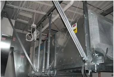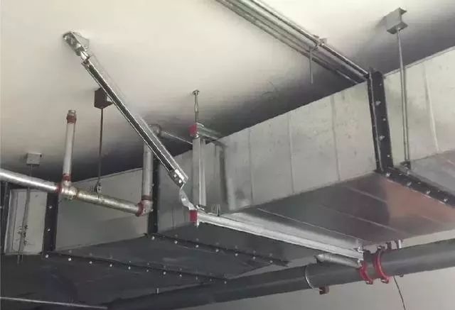 而一旦给悬吊系统增加了抗震设施,即抗震支吊架,在地震发生时,通过侧向和纵向的抗震支承能够大大减少其无序晃动,在整体建筑抗震性能完好的情况下,能保证悬吊系统不发生掉落,大大减少因次生灾害引起的人员伤亡和经济损失。