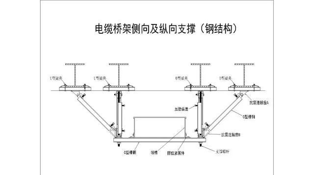 建筑机电抗震系统的组成包括立管管束、钢梁及檩条夹钳、环状管吊、防震斜撑系统、防震钢吊件与支撑等等。
