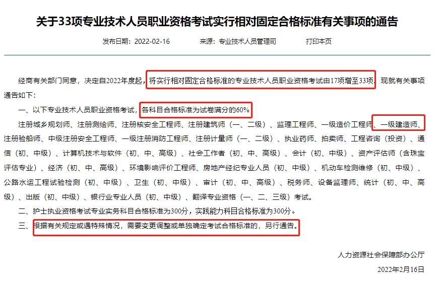 根据人社部消息,自2022年度起,将实行相对固定合格标准,一建各科目合格标准为试卷满分的60%: