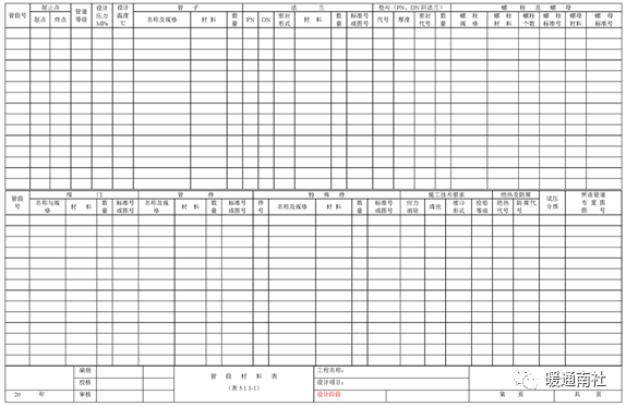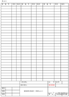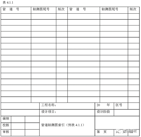 管段表索引的作用和内容与轴测图索引相似,只是没有轴测图号一项。