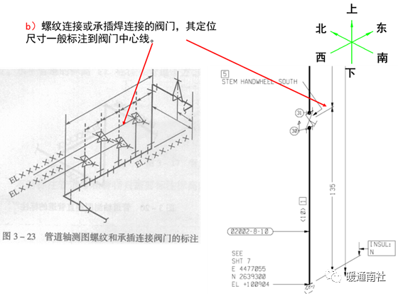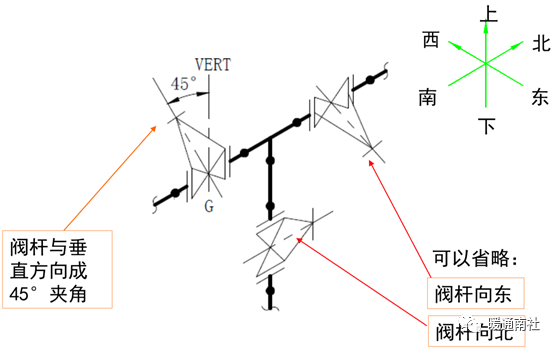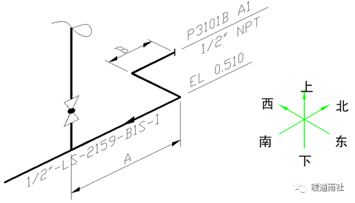 a)比例:轴测图可不按比例绘制,但各种阀门、管件之间的比例要协调,它们在管段中的位置的相对比例也要协调。