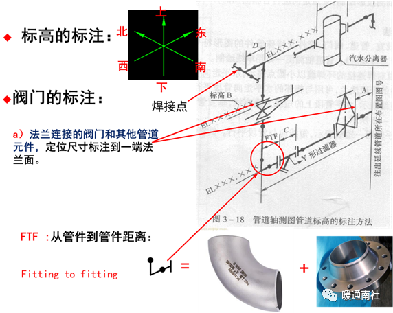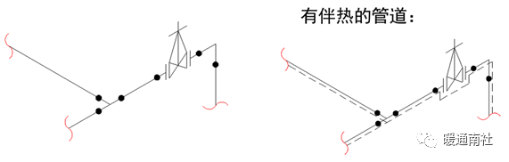 管道元件定位尺寸:分支管、管道改变走向处、管道元件如阀门、法兰、孔板、疏水器、补偿器、液封、异径管、仪表接口、管架等应标注定位尺寸。