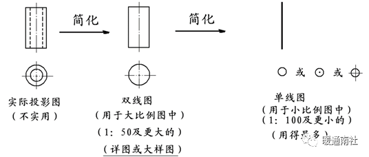 缺点:当局部管道比较复杂时,图面就比较复杂,可画局部管道轴测图辅助表示复杂管道。