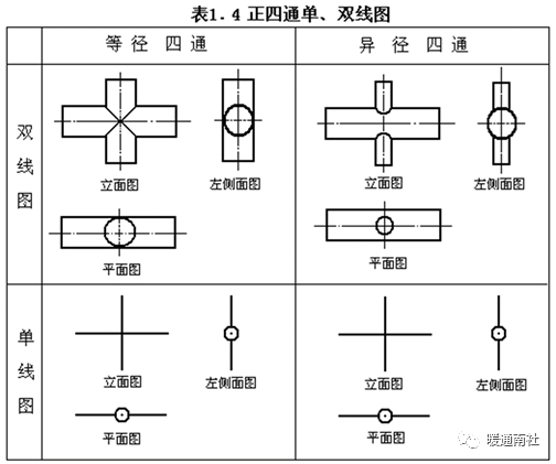 4、四通的单双线三视图