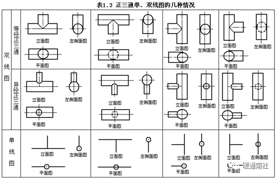 3、三通的单双线三视图