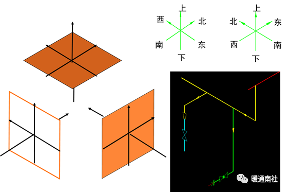①直向管:沿三个坐标轴走向的管道