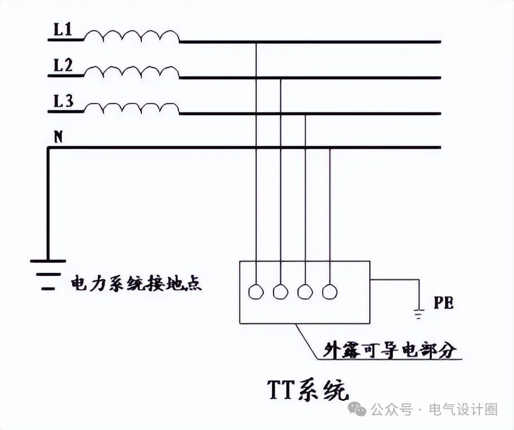 第一个字母 T 表示电源的中性点跟大地是连着的,I 表示跟大地是隔开的(就是说电源的中性点不接地,或者是经过高阻抗元件跟大地连着)。