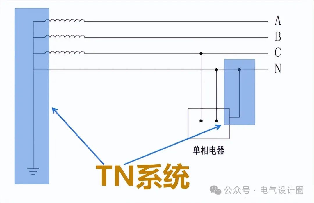 所以啊,这第一个字母表明的是电源侧跟大地的关系,这属于系统接地的范围。第二个字母 T 呢,是说用户用电设备的金属外壳跟大地连着,N 表示用户用电设备的金属外壳跟电源的中性点连着从而实现接地。所以呀,这第二个字母代表的是用户用电设备跟大地的关系,这属于保护接地的范畴。