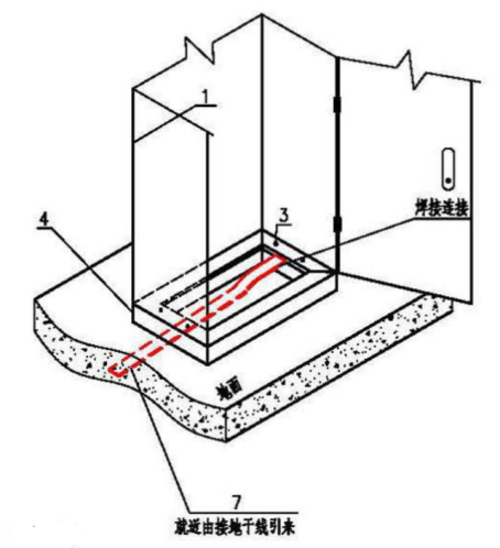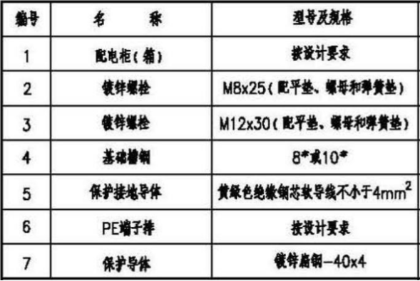 (1)配电柜(箱)基础槽钢应与保护导体可连接,保护导体可采用镀锌扁钢或截面积不小于4mm²的黄绿色绝缘铜芯软导线: