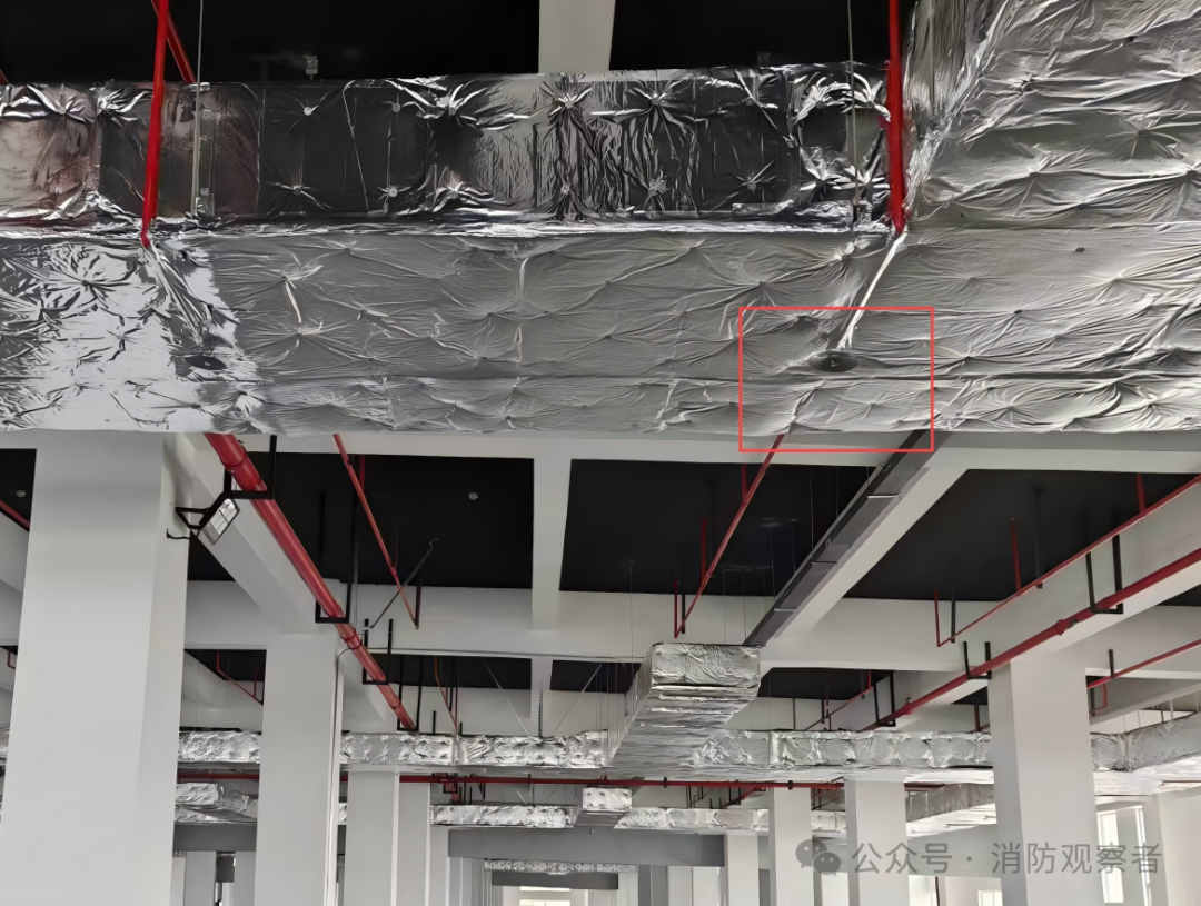 对于没有空隙的通风管道,且不影响下方喷头动作,可以不设置挡水板。