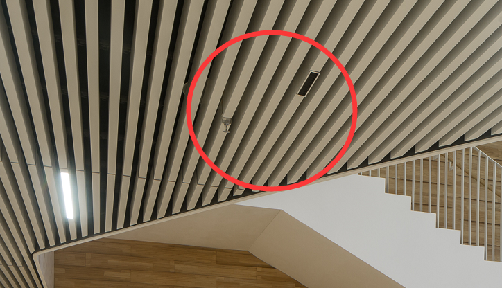 安装在吊顶下方的洒水喷头应设置挡水板,挡水板可设置在吊顶的内侧(为了美观)如下图。