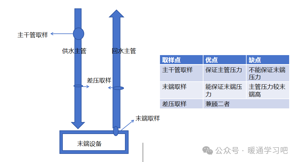 (1)控制逻辑:通过在供回水管道差压取样,经过变送器准换为标准电流信号后经过PLC处理后PID控制水泵的运行。同时回传至中控室监测压力及水泵的运行状况监控。