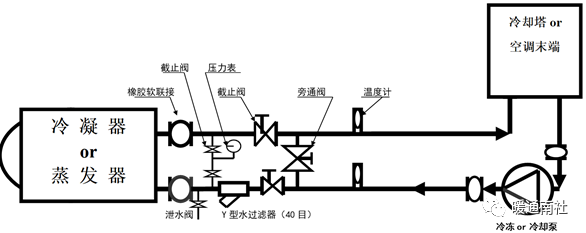 冷凝器及蒸发器水系统安装示意图: